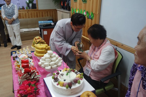 강북데이케어센터에서는 어르신들의 소속감 증진 및 즐거움 제공을 위하여 2017년 6월 어르신 생신잔치를 실시했습니다. 본 행사는 센터장님 축하말씀을 시작으로 생신축하 노래부르기, 선물증정식, 편지낭독, 즐거운노래방 강사분들의 공연 순으로 이루어졌습니다.