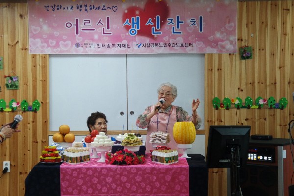 강북데이케어센터에서는 6월 생신자를 맞이하여 6월 어르신 생신잔치를 실시하였습니다. 본 행사는 센터장님의 축하말씀 및 선물전달식, 보호자분들에게 받은 감사편지 낭독, 유재희 선생님과 실버밴드의 축하공연으로 진행하였으며 어르신들과 즐거운 시간을 가졌습니다.