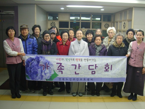시립강북노인종합복지관 병설 강북데이케어센터에서는 12/8(목)에 센터 이용 보호자(가족)의 정기적인 가족모임을 통하여 센터와 가족간 상호 정보를 교환하고 보호자의 의견을 센터 운영에 반영하고자 가족간담회를 실시하였습니다.