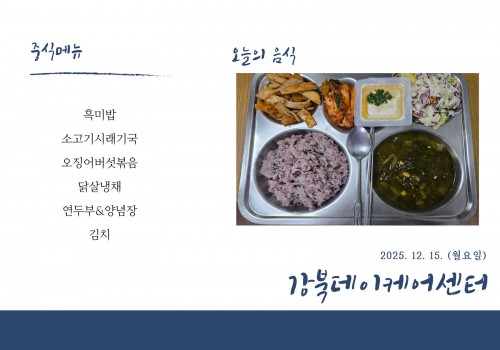 [데이케어] 2025년 12월 15일(월) 중식·간식·석식 식단