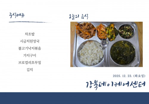 [데이케어] 2025년 12월 23일(화) 중식·간식·석식 식단