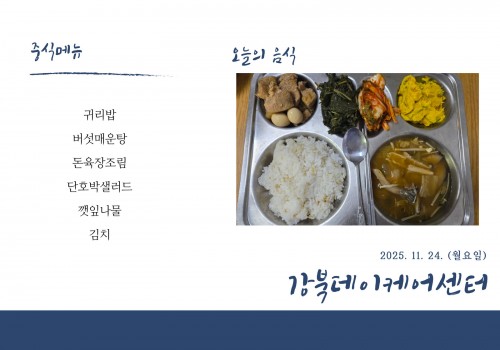 [데이케어] 2025년 11월 24일(월) 중식·간식·석식 식단