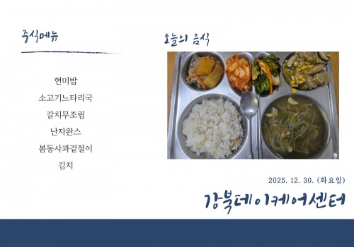 [데이케어] 2025년 12월 30일(화) 중식·간식·석식 식단