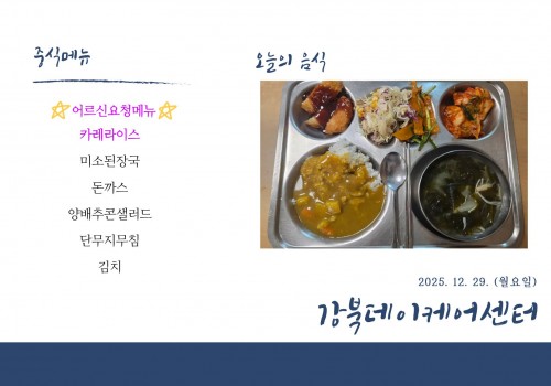 [데이케어] 2025년 12월 29일(월) 중식·간식·석식 식단