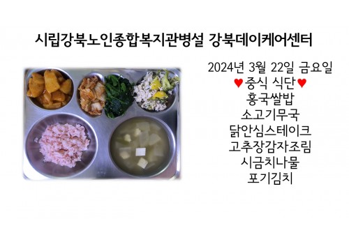 [데이케어] 2024년 3월 22일(금) 중식·간식·석식 식단