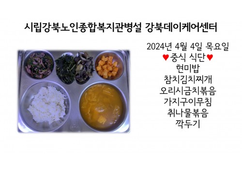 [데이케어] 2024년 4월 4일(목) 중식·간식·석식 식단