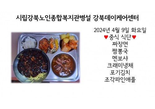 [데이케어] 2024년 4월 9일(화) 중식·간식·석식 식단