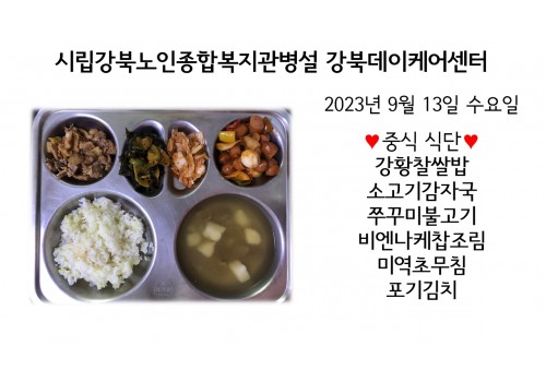[데이케어] 2023년 9월 13일(수) 중식 식단