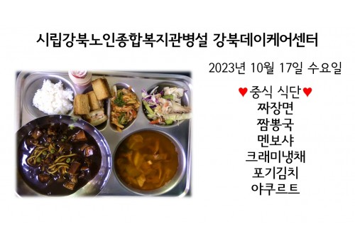 [데이케어] 2023년 10월17일 (화) 중식 식단