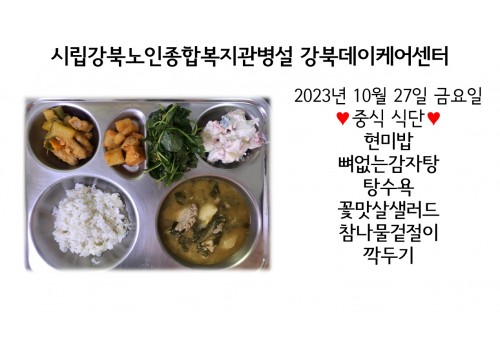 [데이케어] 2023년 10월27일(금) 중식 식단