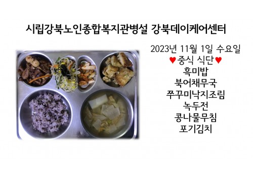 [데이케어] 2023년 11월1일 (수) 중식 식단