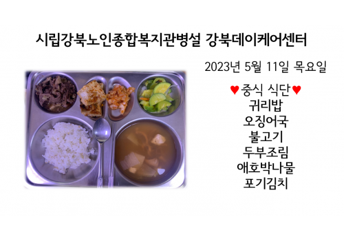 [데이케어] 2023년 5월 11일(목) 중식 식단