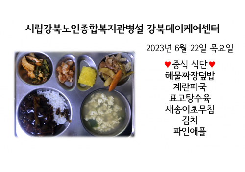 [데이케어] 2023년 6월22일 (목) 중식 식단