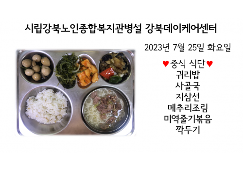 [데이케어] 2023년 7월 25일(화) 중식 식단