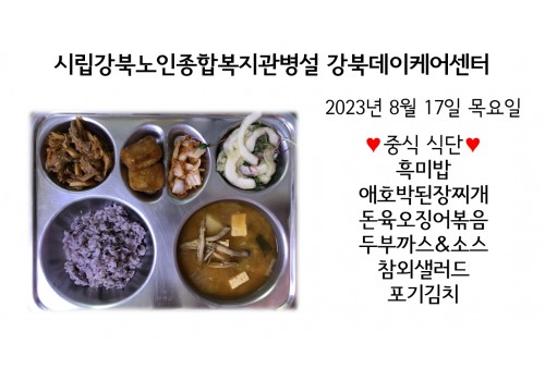[데이케어] 2023년 8월 17일(목) 중식 식단