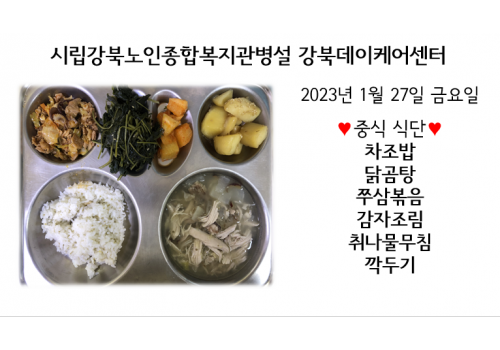 [데이케어] 2023년 1월27일(금) 중식식단