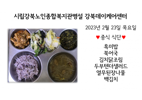 [데이케어] 2023년 2월23일(목) 중식 식단