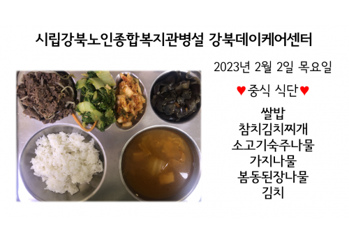 [데이케어]2023년 2월 2일(목) 중식식단