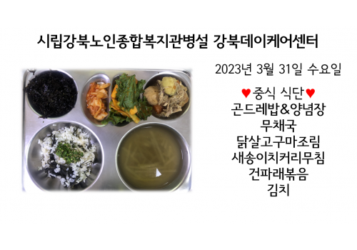 [데이케어] 2023년 3월31일(금) 중식 식단