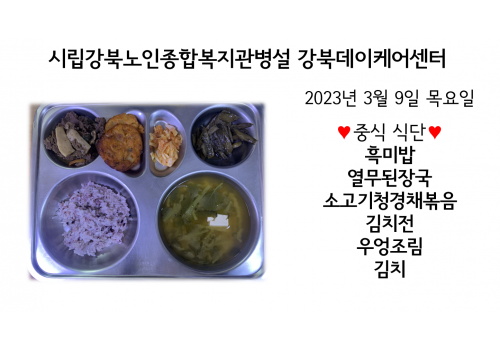 [데이케어] 2023년 3월9일 중식 식단