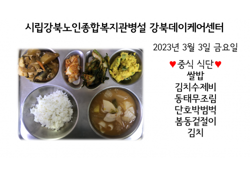 [데이케어] 2023년 3월3일 중식 식단