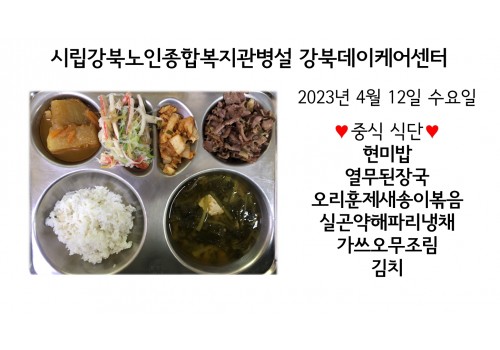 [데이케어] 2023년 4월12일(수) 중식 식단