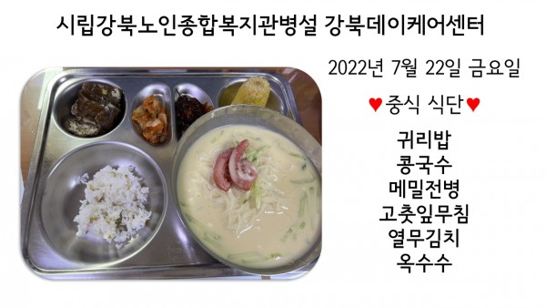 2022년 7월 22일(금) 중식 식단입니다.(클릭하면 사진을 더 크게 보실 수 있습니다.)