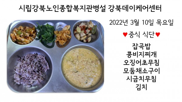 2022년 3월 10일(목) 중식 식단입니다. (클릭하면 사진을 더 크게 보실 수 있습니다.)