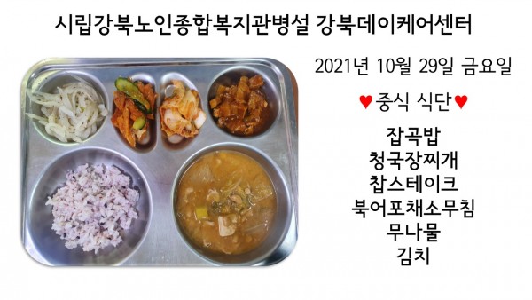 2021년 10월 29일(금) 중식 식단입니다. (클릭하면 사진을 더 크게 보실 수 있습니다.)