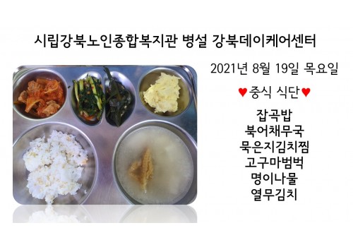 [데이케어] 2021년 8월 19일(목) 중식 식단