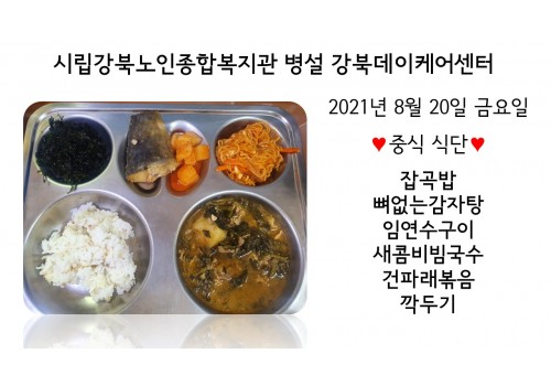 [데이케어] 2021년 8월 20일(금) 중식 식단