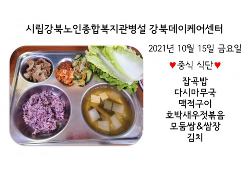 [데이케어] 2021년 10월 15일(금) 중식 식단