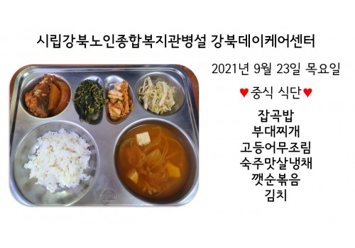 [데이케어] 2021년 9월 23일(목) 중식 식단