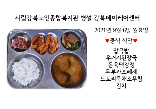 [데이케어] 2021년 9월 6일(월) 중식 식단