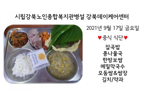[데이케어] 2021년 9월 17일(금) 중식 식단