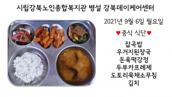 [데이케어] 2021년 9월 6일(월) 중식 식단