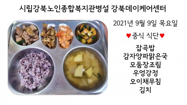 2021년 9월 9일(목) 중식 식단입니다. (클릭하면 사진을 더 크게 보실 수 있습니다.)