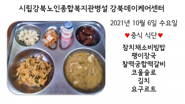 [데이케어] 2021년 10월 6일(수) 중식 식단