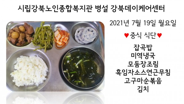 2021년 7월 19일(월) 중식 식단입니다. (클릭하면 사진을 더 크게 보실 수 있습니다.)
