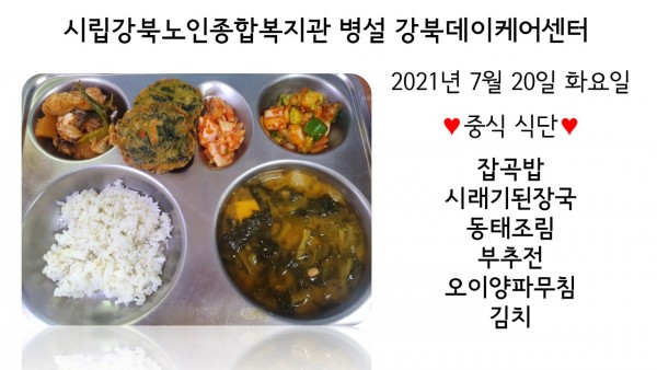 2021년 7월 20일(화) 중식 식단입니다. (클릭하면 사진을 더 크게 보실 수 있습니다.)
