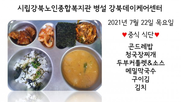 [데이케어] 2021년 7월 22일(목) 중식 식단