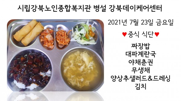 2021년 7월 23일(금) 중식 식단입니다. (클릭하면 사진을 더 크게 보실 수 있습니다.)