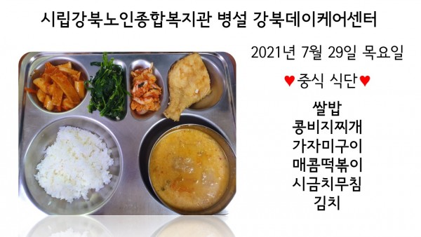 2021년 7월 29일(목) 중식 식단입니다. (클릭하면 사진을 더 크게 보실 수 있습니다.)