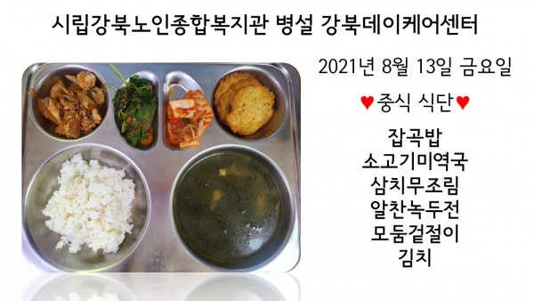 [데이케어] 2021년 8월 13일(금) 중식 식단