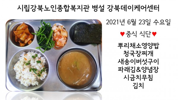 2021년 6월 23일(수) 중식 식단입니다. (클릭하면 사진을 더 크게 보실 수 있습니다.)