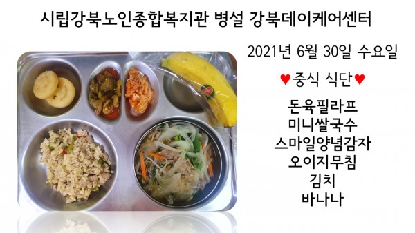 2021년 6월 30일(수) 중식 식단입니다. (클릭하면 사진을 더 크게 보실 수 있습니다.)
