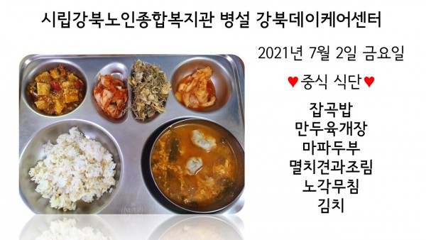 2021년 7월 2일(금) 중식 식단입니다. (클릭하면 사진을 더 크게 보실 수 있습니다.)
