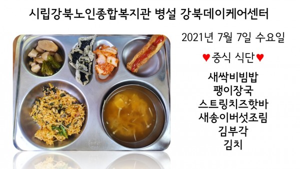2021년 7월 7일(수) 중식 식단입니다. (클릭하면 사진을 더 크게 보실 수 있습니다.)