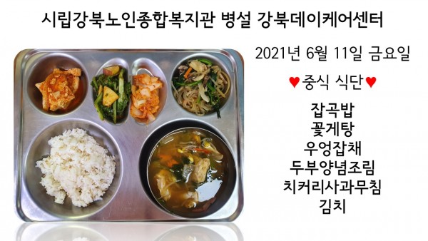 2021년 6월 11일(금) 중식 식단입니다. (클릭하면 사진을 더 크게 보실 수 있습니다.)