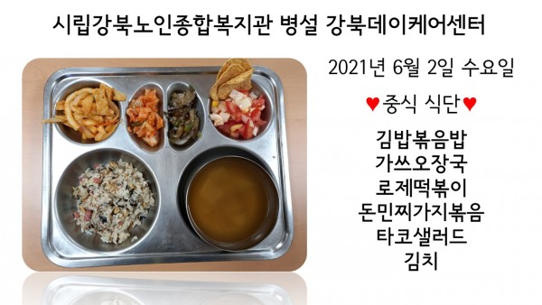 2021년 6월 2(수) 중식 식단입니다. (클릭하면 사진을 더 크게 보실 수 있습니다.)